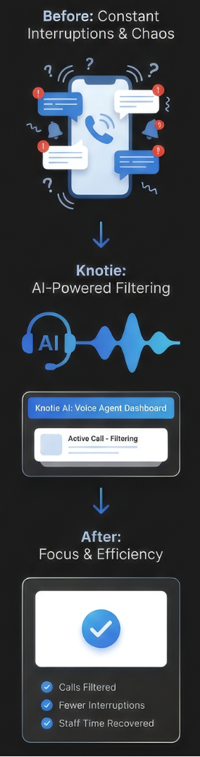 Calls interrupted real work. Artificial Ignorance answered instantly, filtered the noise, and passed through only what mattered.